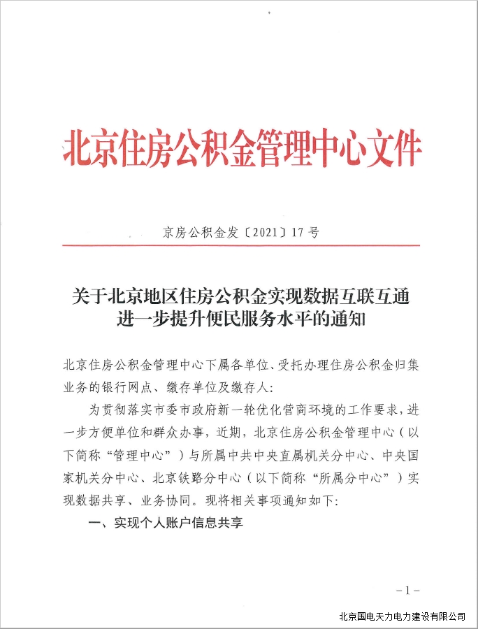政策文件:关于北京地区住房公积金实现数据互联互通进一步提升便民服务水平的通知